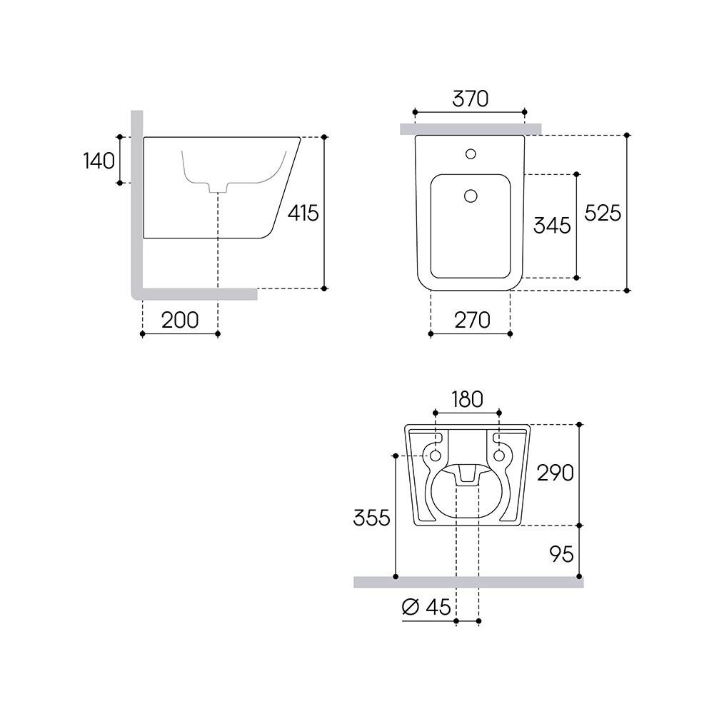 ОВО/OVO, Биде подвесное, серый матовый OVO0330