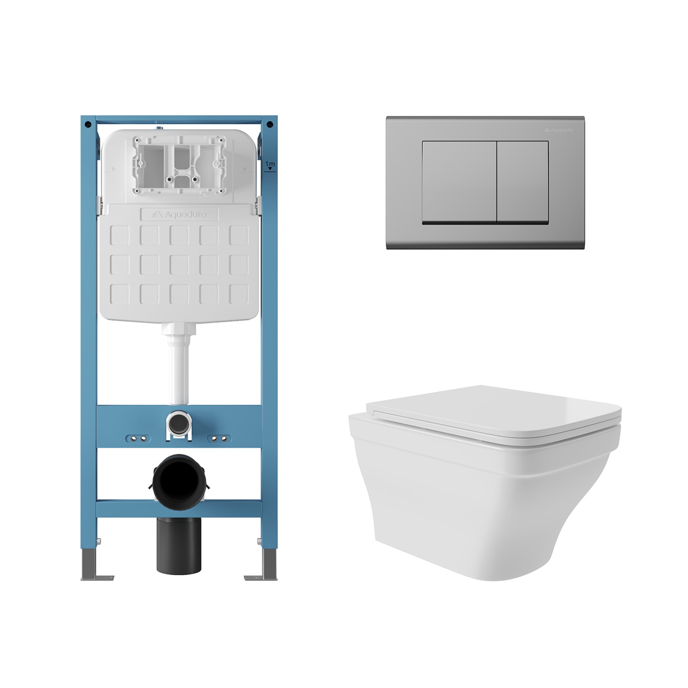 Aqueduto комплект: TECNICA Novo Система инсталляции для подвесного унитаза, QUADRADO Панель смыва, хром, ESTETA Унитаз подвесной 520*370 безободковый, сиденье с микролифтом, белый глянцевый
