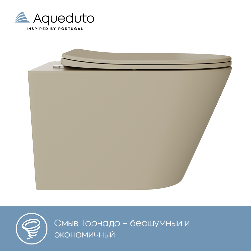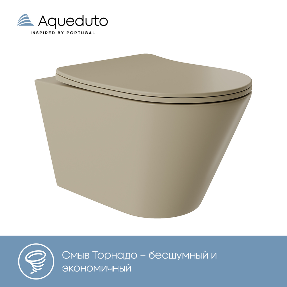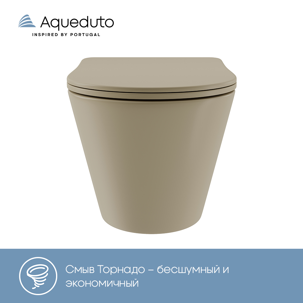 Aqueduto КОН Торнадо/CONE Tornado Унитаз подвесной 525*360 безободковый, Tornado, сиденье с микролифтом, песчаный матовый
