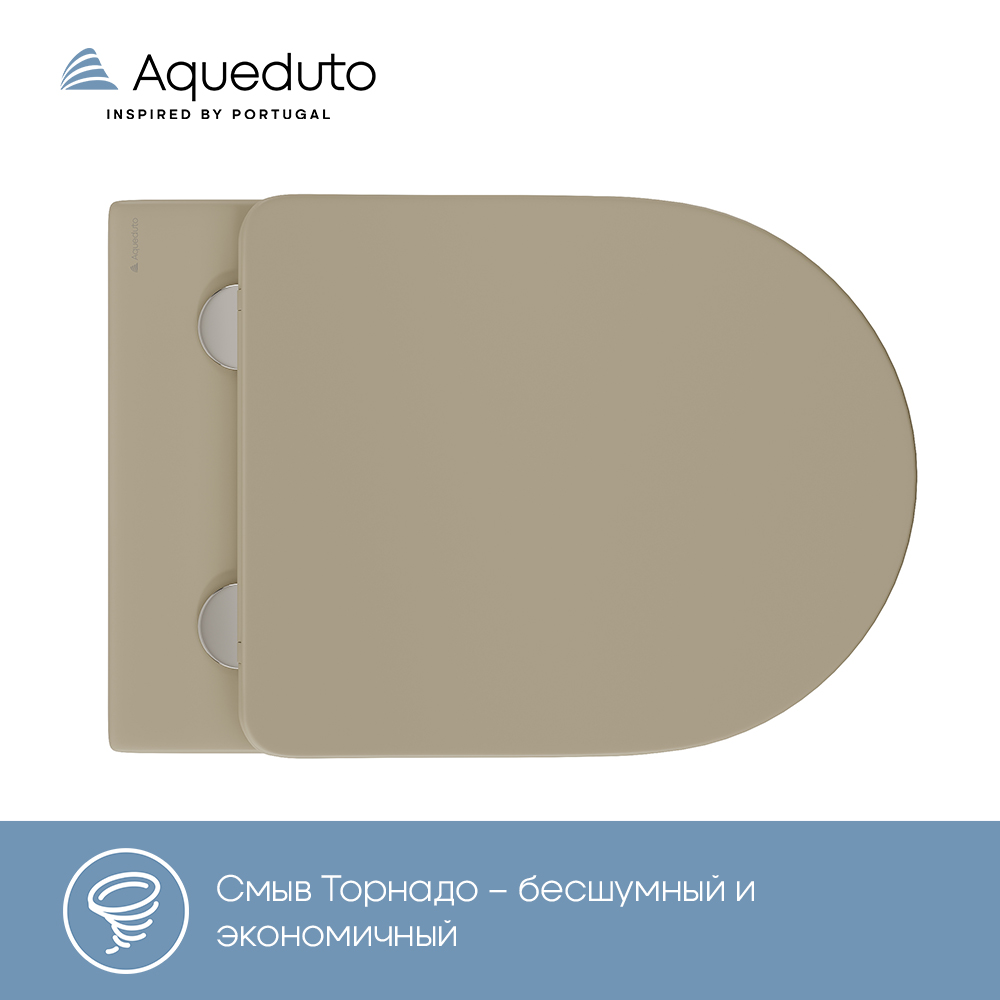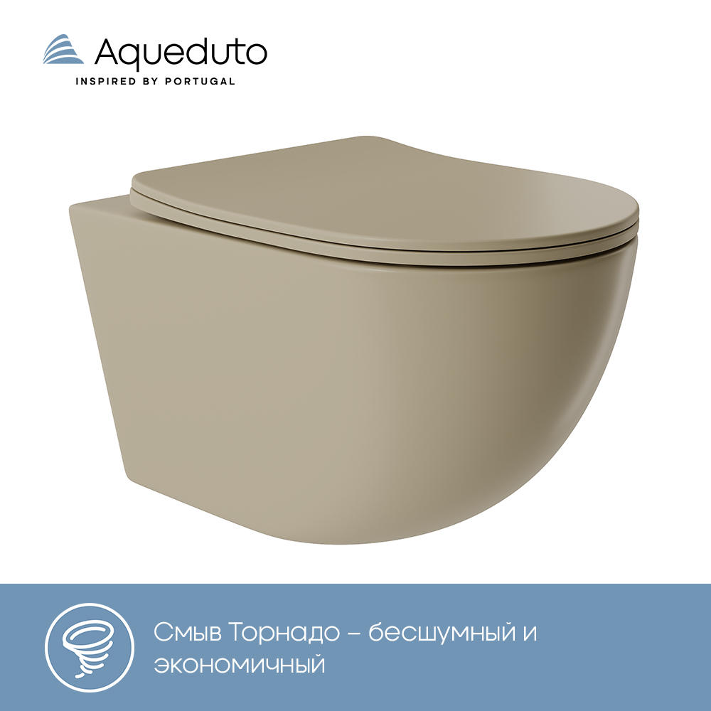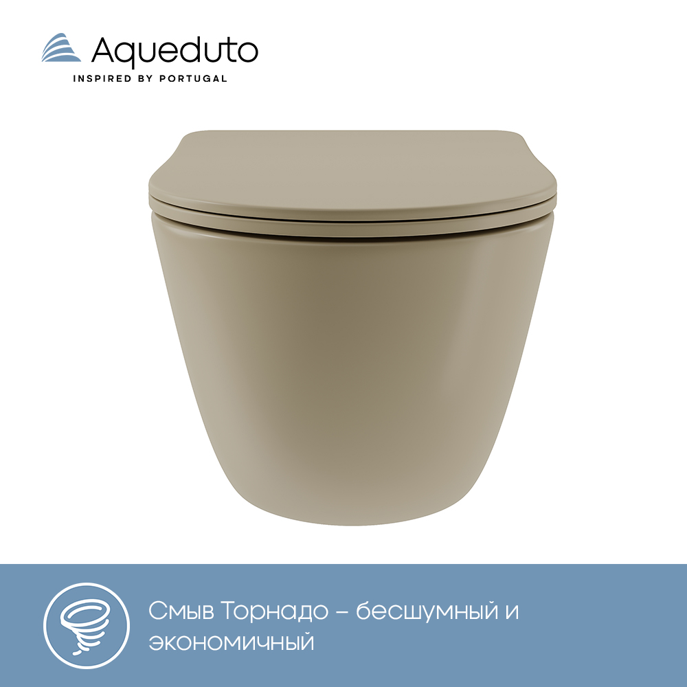 Aqueduto ОВО Торнадо/OVO Tornado Унитаз подвесной 525*360 безободковый, Tornado, сиденье с микролифтом, песчаный матовый