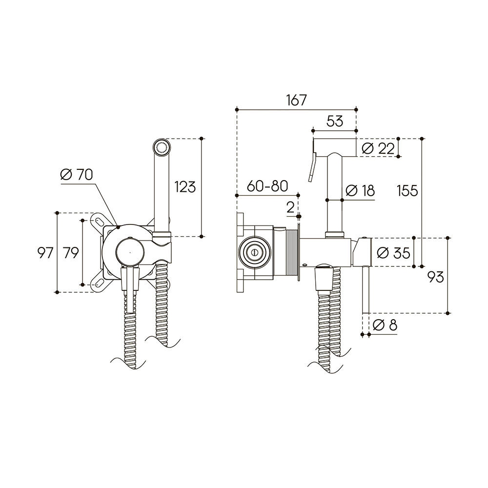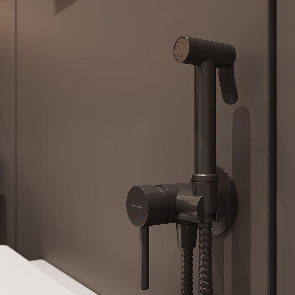 Aqueduto ПУРЕЗА/PUREZA Смеситель скрытого монтажа с гигиеническим душем, со скрытой частью, оружейная сталь