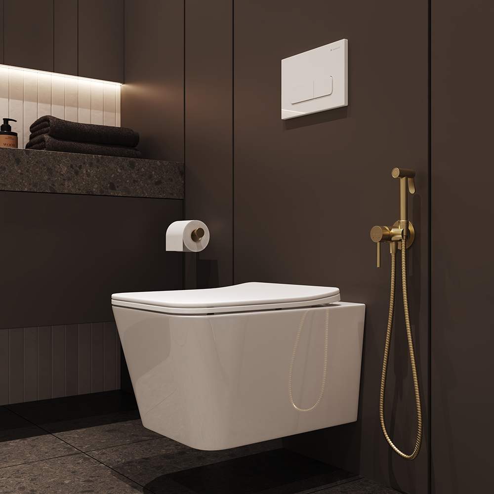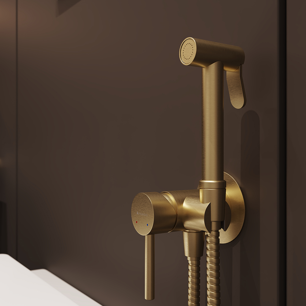 Aqueduto ПУРЕЗА/PUREZA Смеситель скрытого монтажа с гигиеническим душем, со скрытой частью, шлифованное золото
