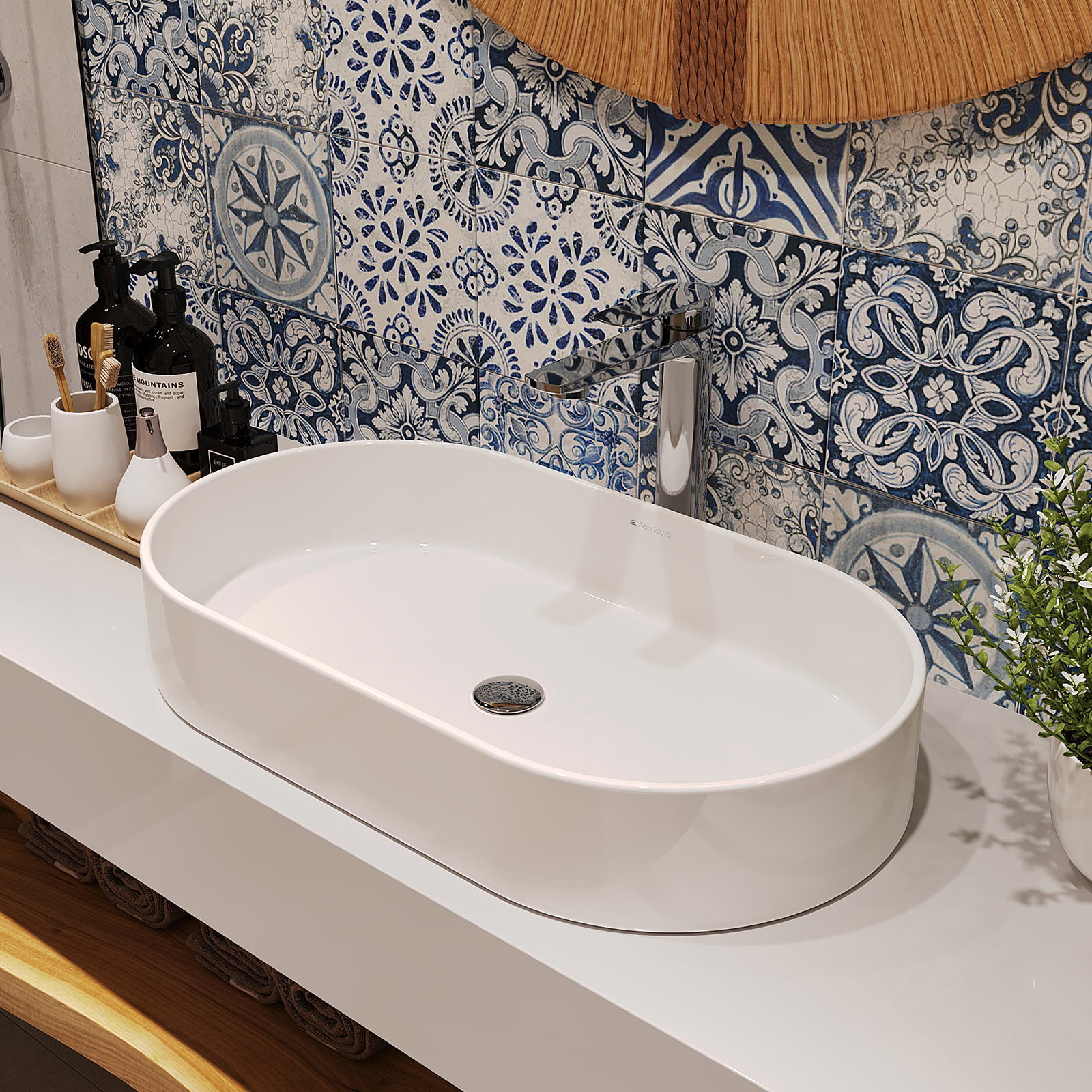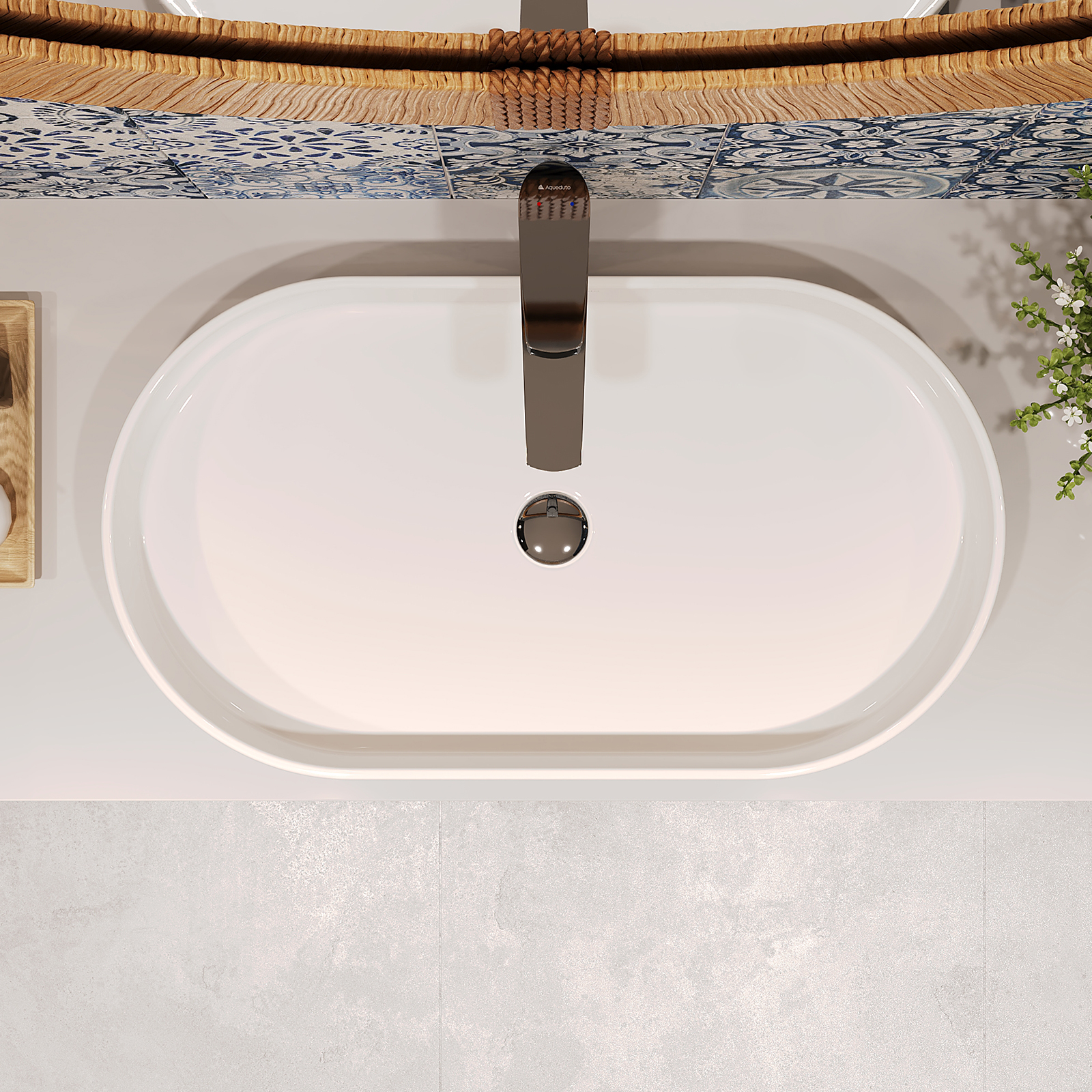 Aqueduto ЭСПИРАЛ/ESPIRAL Раковина накладная овальная 390*600, белый глянцевый