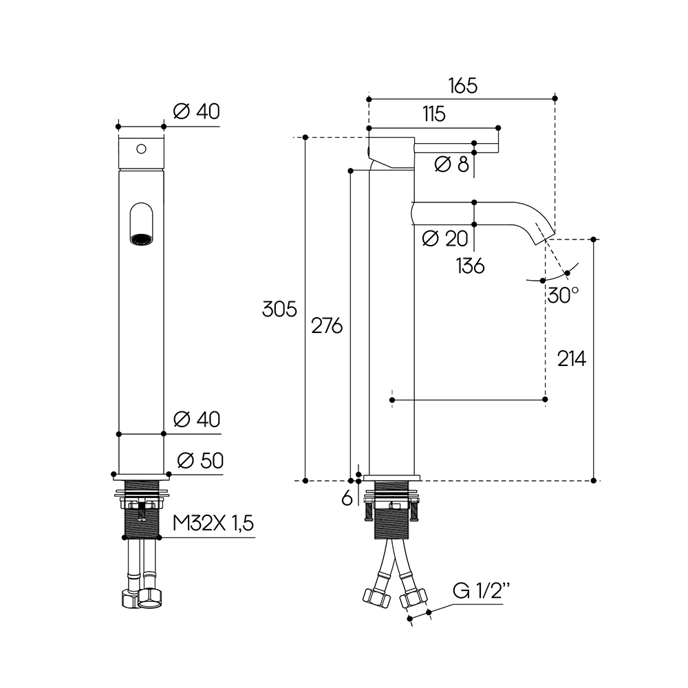 ГЕОМЕТРИКО/GEOMETRICO, Смеситель для раковины L, Хром GEO0300