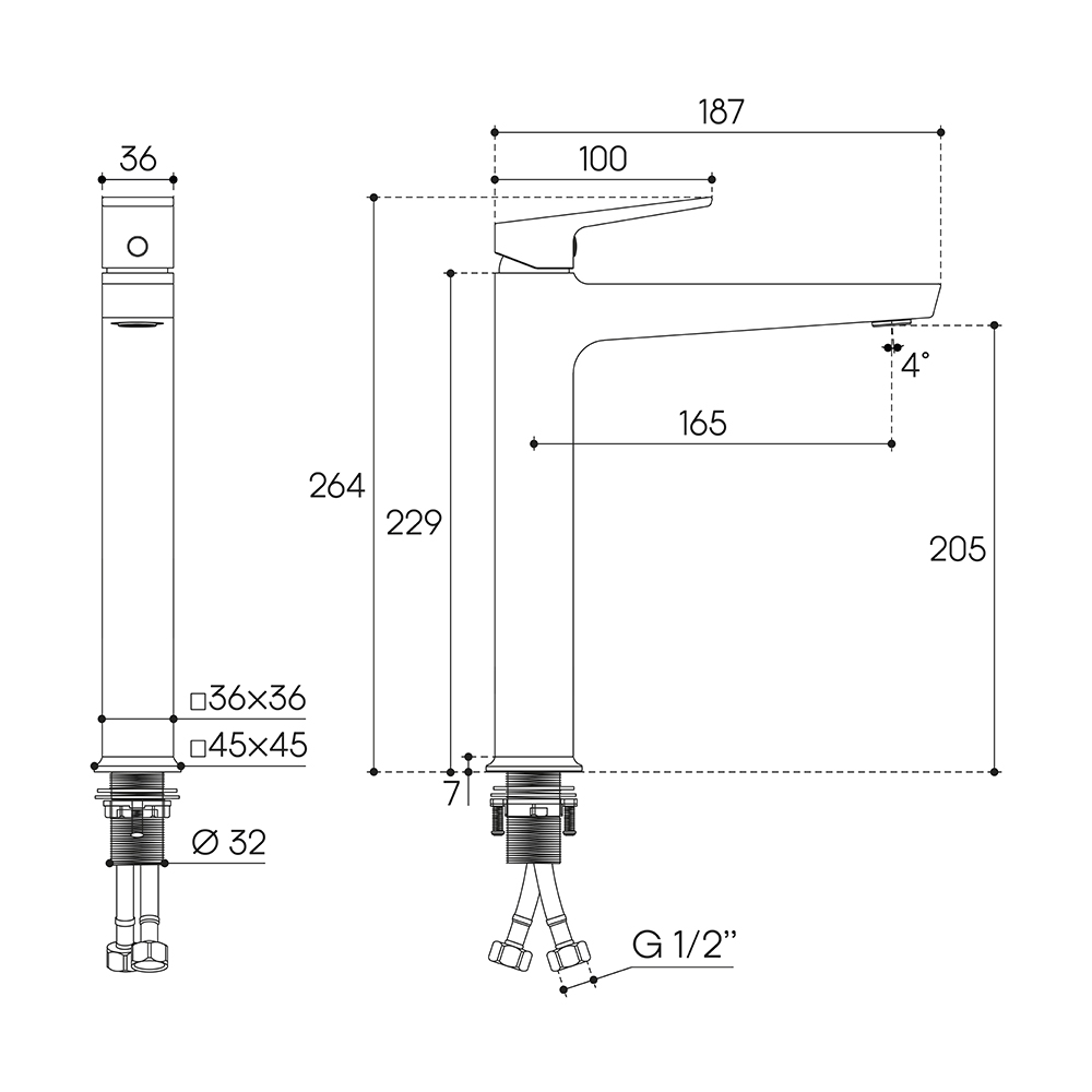 ГЕОМЕТРИКО/GEOMETRICO, Смеситель для раковины L, Хром GEO0300