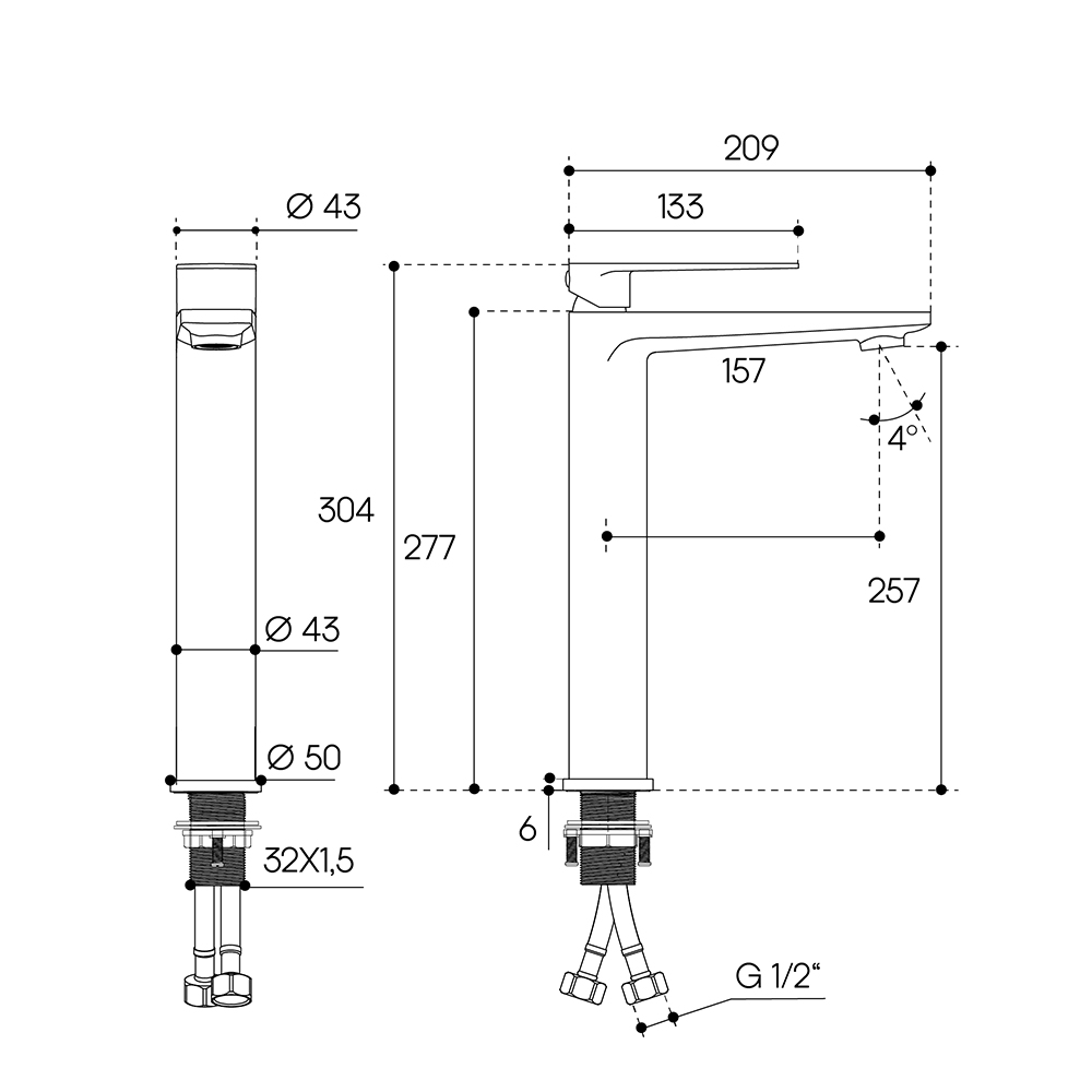 ГЕОМЕТРИКО/GEOMETRICO, Смеситель для раковины L, Хром GEO0300