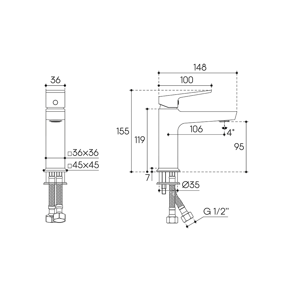 ГЕОМЕТРИКО/GEOMETRICO, Смеситель для раковины L, Хром GEO0300