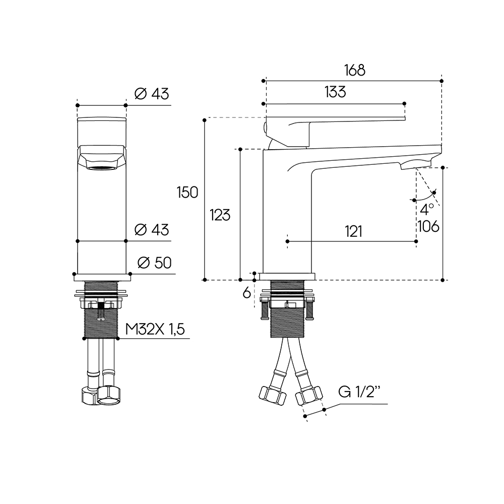 ГЕОМЕТРИКО/GEOMETRICO, Смеситель для раковины L, Хром GEO0300