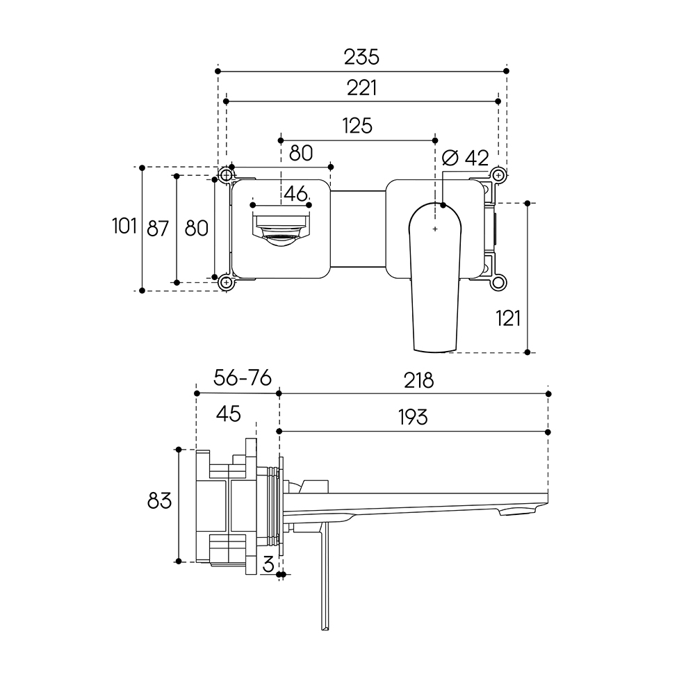 ЛИНХА/LINHA, Смеситель для раковины настенного монтажа со скрытой частью, Шлифованное золото