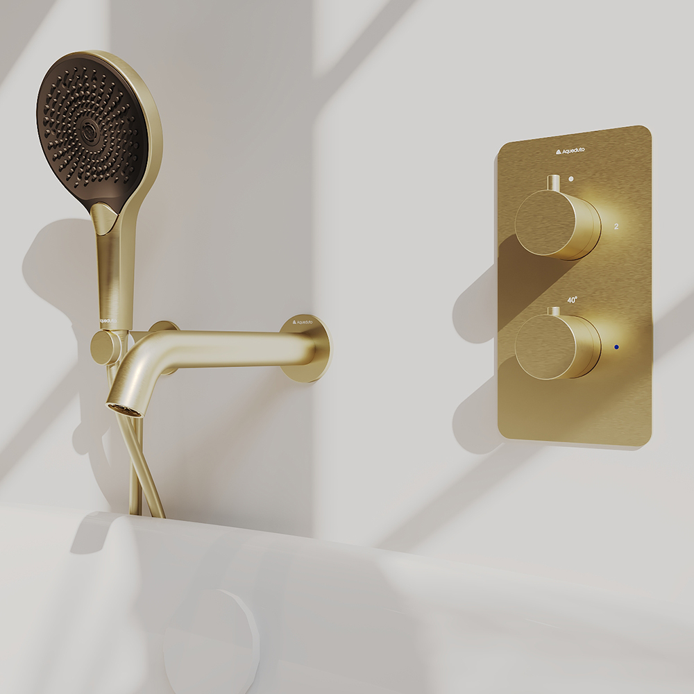 Aqueduto Смеситель термостатический скрытого монтажа, 2 потребителя, со скрытой частью, шлифованное золото