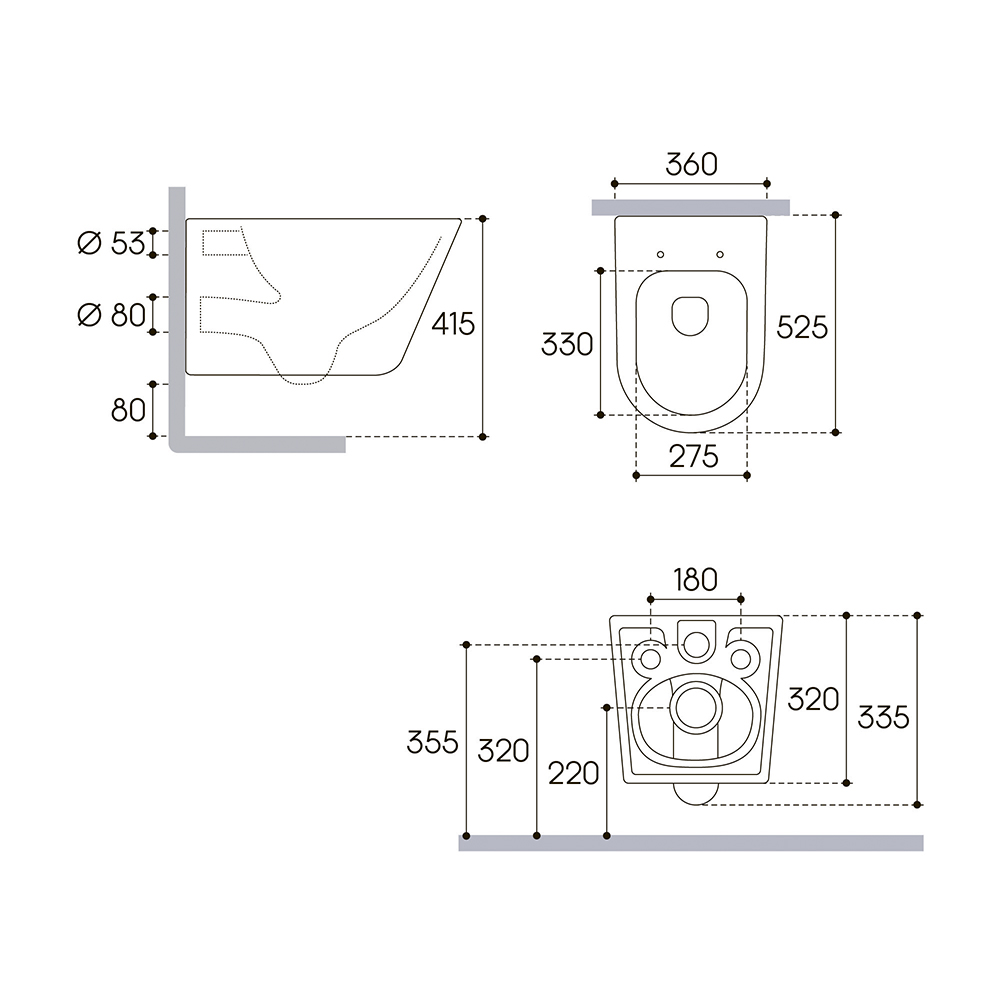 Унитаз подвесной, сиденье, комплект креплений для сиденья и монтажа унитаза, гарантийный талон, инструкция