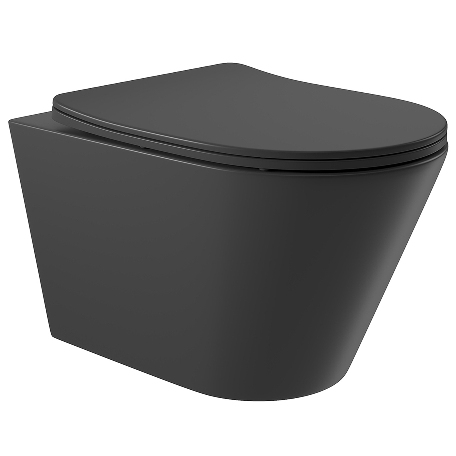 Aqueduto КОН/CONE Унитаз подвесной 525*360 безободковый, сиденье с микролифтом, черный матовый