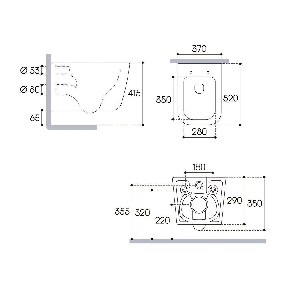 Унитаз подвесной, сиденье, комплект креплений для сиденья и монтажа унитаза, гарантийный талон, инструкция