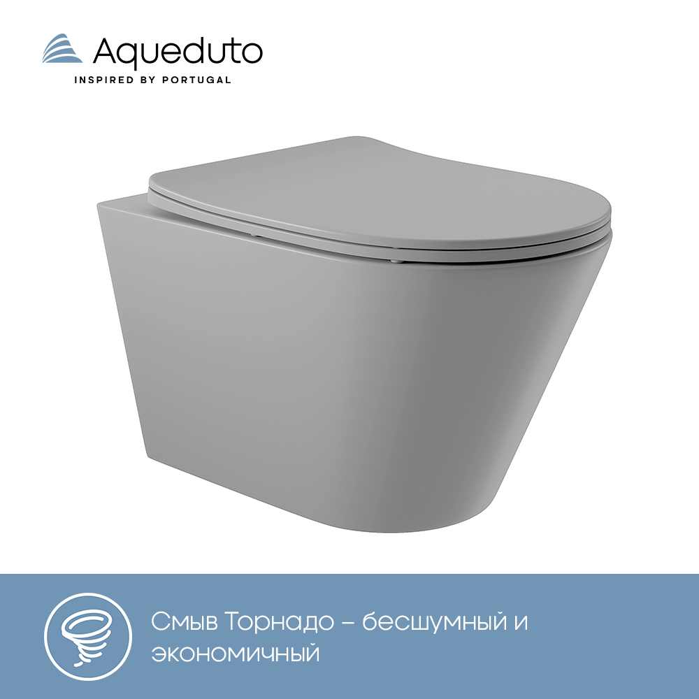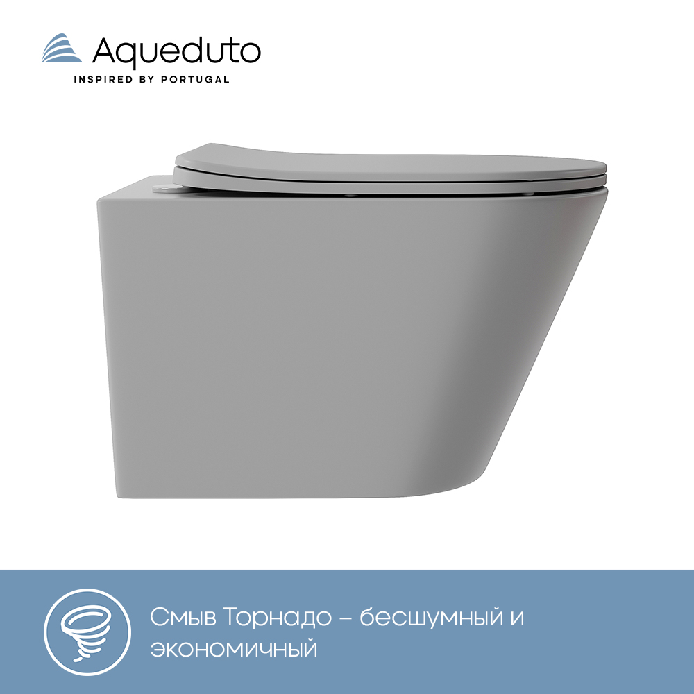Aqueduto CONE Tornado Унитаз подвесной 525*360 безободковый, Tornado, сиденье с микролифтом, серый матовый