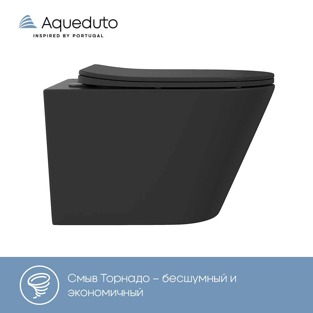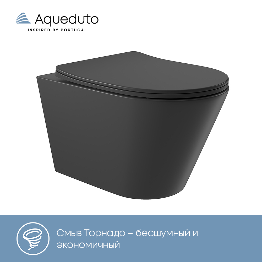 Aqueduto CONE Tornado Унитаз подвесной 525*360 безободковый, Tornado, сиденье с микролифтом, черный матовый